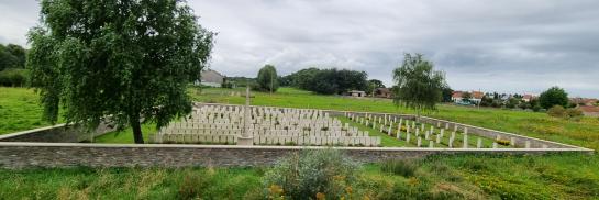 Der Friedhof umfasst eine Fläche von 1.144 m² und ist von einer niedrigen, rauen Mauer umgeben. Britische Friedhöfe, so klein sie auch sein mögen, zeichnen sich immer wieder durch dasselbe Grundkonzept aus, das bereits Anfang 1918 eingeführt wurde. Ein Argument für die Friedhofsgestaltung ist, dass ein solcher Friedhof kein Friedhof der Kirche oder der Gemeinde ist, sondern ein Denkmal. Ein Soldatenfriedhof wird also nicht nur als Anerkennung angelegt, sondern mehr noch als dankbare Verehrung. Die Informationen sind in allen Grabsteinen in der gleichen Form eingemeißelt. Es gibt keine Rangunterschiede, alle Grabsteine sind gleich: weißer Portlandstein aus Kreidebrüchen in Südengland.