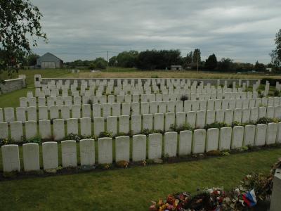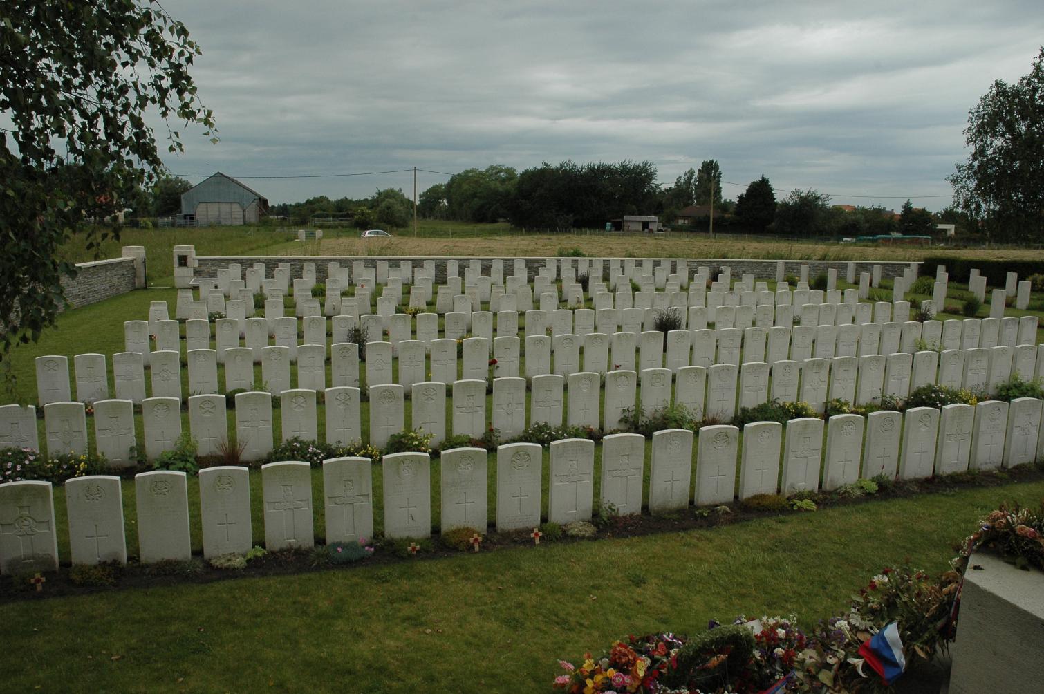 Auf jedem britischen Friedhof steht ein weißes Steinkreuz mit einem Bronzeschwert darauf, das Opferkreuz ('cross of sacrifice'). Auf den größeren Friedhöfen gibt es eine Art Altar, den Gedenkstein ('stone of remembrance'). Auf dem Stein ist überall der gleiche Satz eingemeißelt: 'Their name liveth for evermore' (Ihr Name möge ewig leben). Am Eingang eines jeden Friedhofs befindet sich eine Nische in der Wand, die mit einer kleinen schwarzen Metalltür verschlossen ist. In dieser Nische befinden sich normalerweise zwei Bücher: die 'history‘ (Geschichte) des Friedhofs und das Besucherverzeichnis.Britische Friedhöfe sehen relativ farbenfroh aus, wie auch die Parks in England. Es sind keineswegs düstere Friedhöfe, sondern sie wirken hell und hoffnungsvoll, zum Himmel hin offen. Alle 156 britischen Friedhöfe in Westflandern werden von der Commonwealth War Graves Commission in Ypern verwaltet. Das Friedhofsgelände ist eigentlich britischer Boden, der von Belgien abgetreten wurde.