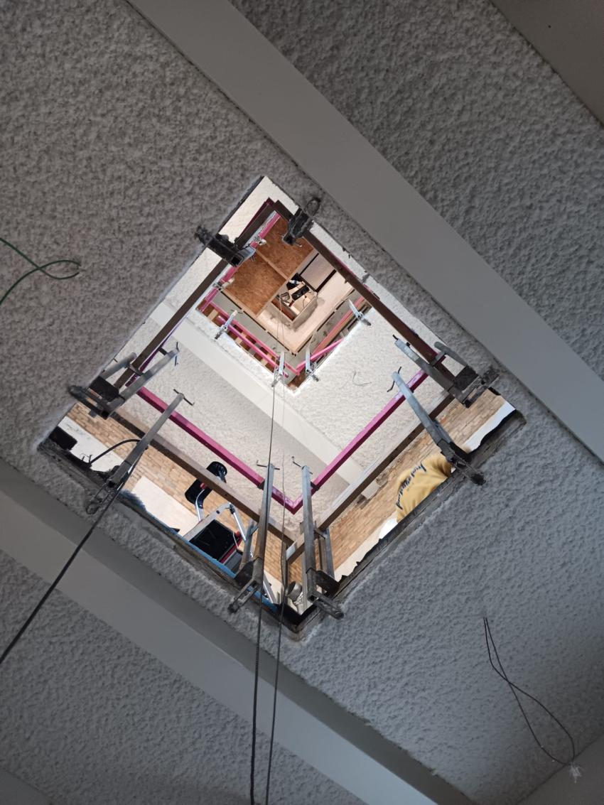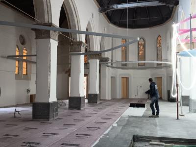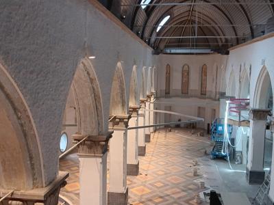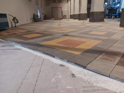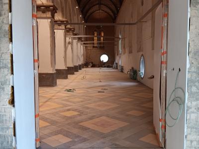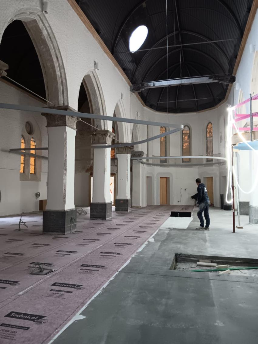 De originele vloer werd opnieuw geplaatst en zorgvuldig beschermd voor de komende schilder- en afwerkingswerken.