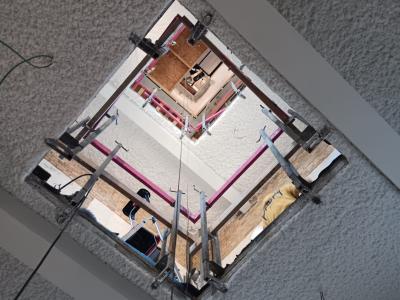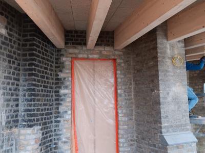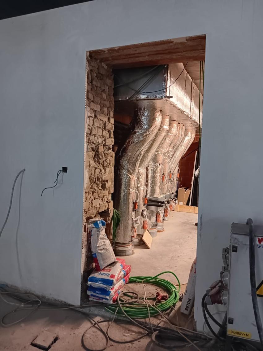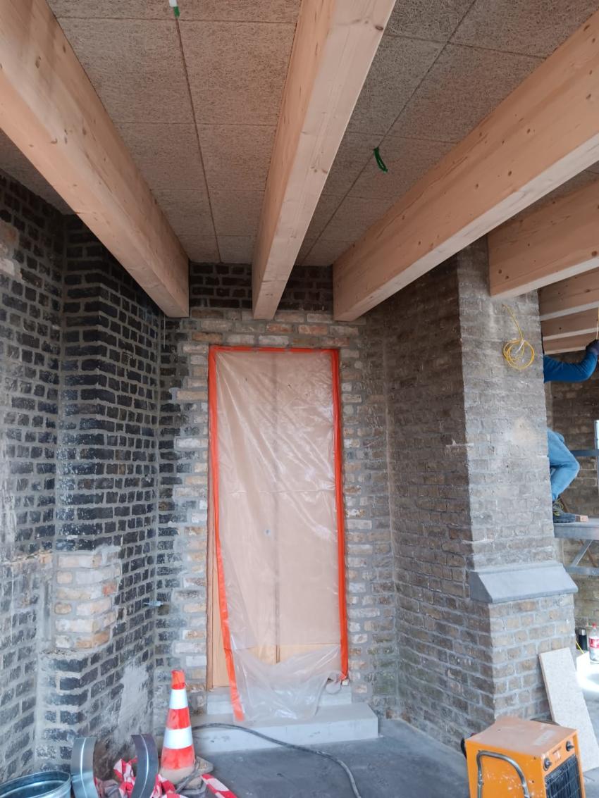 Buiten het gebouw werd eveneens vooruitgang geboekt. De riolering en de regenwaterput zijn inmiddels afgewerkt.
