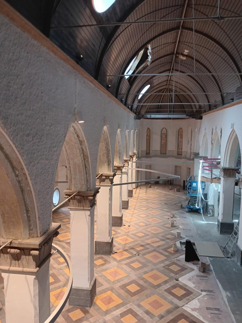 In maart schakelen de werken over naar de fase van de afwerking. Die start met de schilderwerken, die het interieur verder tot leven zullen brengen.