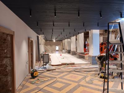 Ook de akoestische pleisterwerken zijn uitgevoerd, wat zal zorgen voor een aangename leesomgeving.