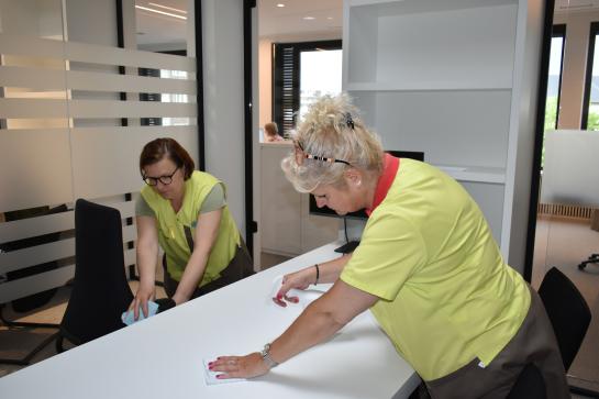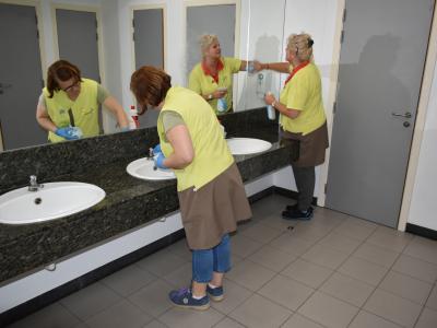 Als je in de gemeentelijke gebouwen komt, merk je meteen dat alles spic en span is. Ons professioneel poetsteam wil dat jij ontvangen wordt aan een proper loket! Ga je lekker ontspannen in de sporthal? Dan is het ook dit team dat zorgt voor een nette accommodatie. Een activiteit meepikken in een andere zaal? Idem dito.