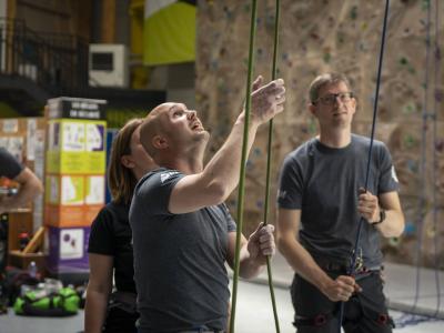 Annelien: “Het is een sport die lichaam én geest traint. Je ontwikkelt kracht, techniek en evenwicht, maar ook vertrouwen: je moet kunnen rekenen op de persoon die je helpt om beveiligd te klimmen. Bovendien is klimmen heel toegankelijk: met wat basisuitleg kan iedereen, zelfs een kind, meteen aan de slag.”