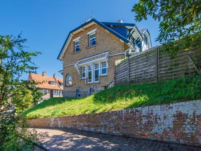 Der typische Cottagestil findet sich hier in der Verwendung der charakteristischen Dachpartie, den bemalten Holzarbeiten und dem Pseudo-Fachwerk wieder. Auffällig ist auch, dass jede Fassade anders gestaltet ist, denn Gleichförmigkeit und Monotonie sind für die Cottage-Architektur nicht charakteristisch. So entsteht ein kompliziertes und unregelmäßiges Gesamtbild, das durch die Verwendung verschiedener Fenstertypen und das Spiel mit zurückgesetzten und vorspringenden Wandabschnitten und abgestumpften Ecken erreicht wird.