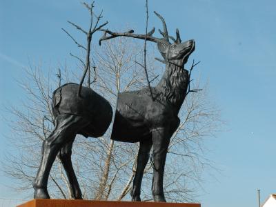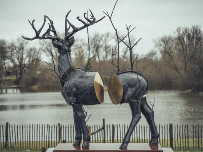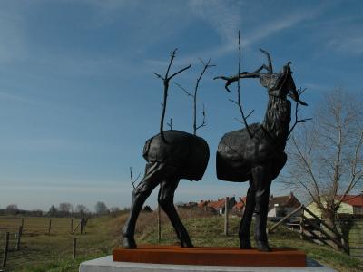 A life-size bronze red deer is on display at the Vijvers Markey in Adinkerke. The sculpture was made by Stief DeSmet, whose work often balances on the edge of where nature meets culture.