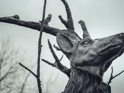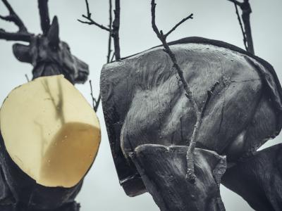 A deer that has been cut into pieces, with certain parts removed and even branches growing out of its body. The sculpture, which is divided into pieces, symbolises the human urge to want to tame wild nature. DeSmet found inspiration in the garden statues he saw in Flemish gardens. His imperfect deer sculpture resists the rigid design of parks. The reflection of the polished parts makes his sculpture blend seamlessly into its surroundings and removes the artificial boundary between humans and their surroundings.