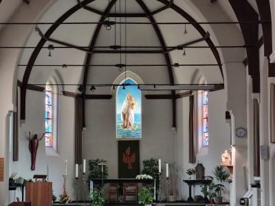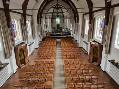 Originally, the church interior was polychromed and richly furnished with neo-Gothic furniture. Because of the limited width of the nave and its Gothic character, we get a strong impression of length and height inside.