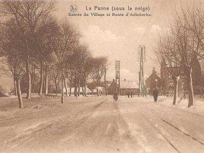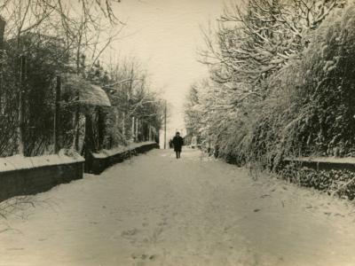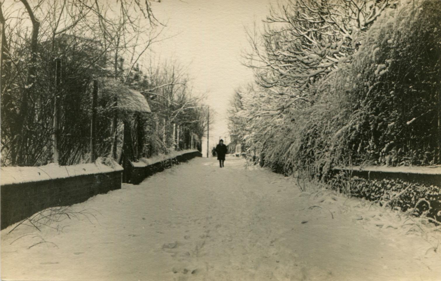 De 'Kittelhoek' en de 'Kitteldreve' (de huidige Lucien Maskenslaan), bedekt met een laagje sneeuw.