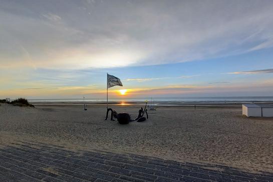 Net aan de voeten van Leopold I, op het zachte zand, vind je de octopus van Laure Prouvost. Dit schitterende zeewezen nodigt je uit om vanop één van zijn tentakels de mooiste zonsondergang mee te pikken.