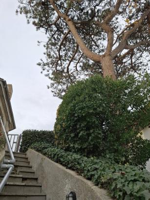 “Aangezien de dennenboom naar het Zuiden groeit, groeit die richting mijn huis en bijgevolg over mijn trap. Je moet weten dat zo een boom sap verliest. En ja, alles wordt gedoopt door dit plakkende dennensap.