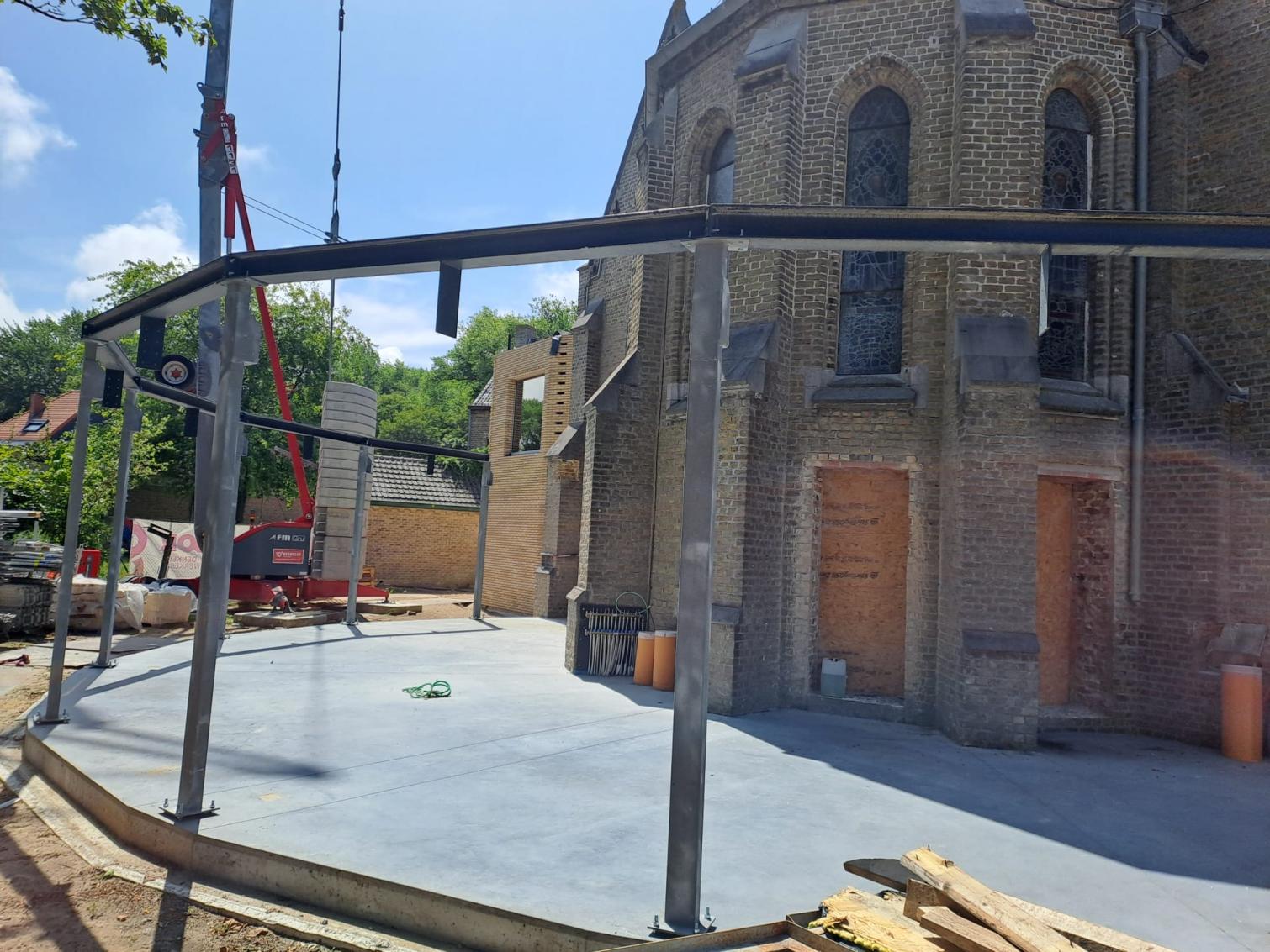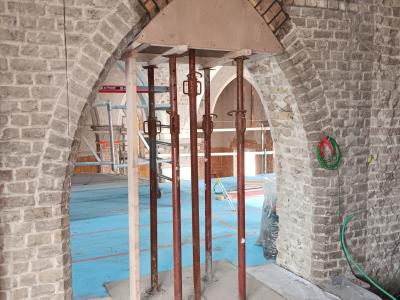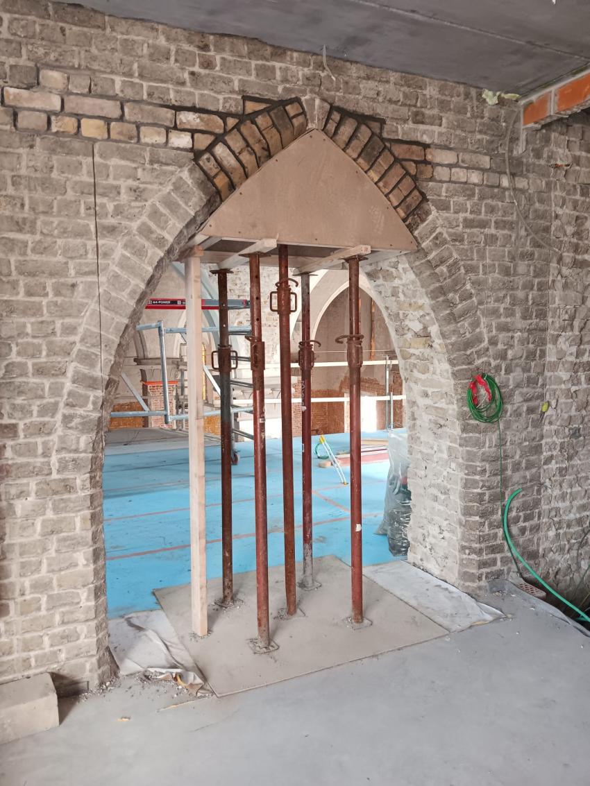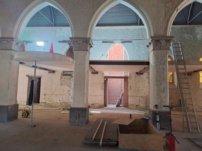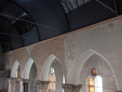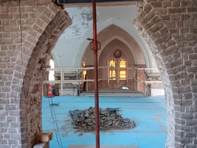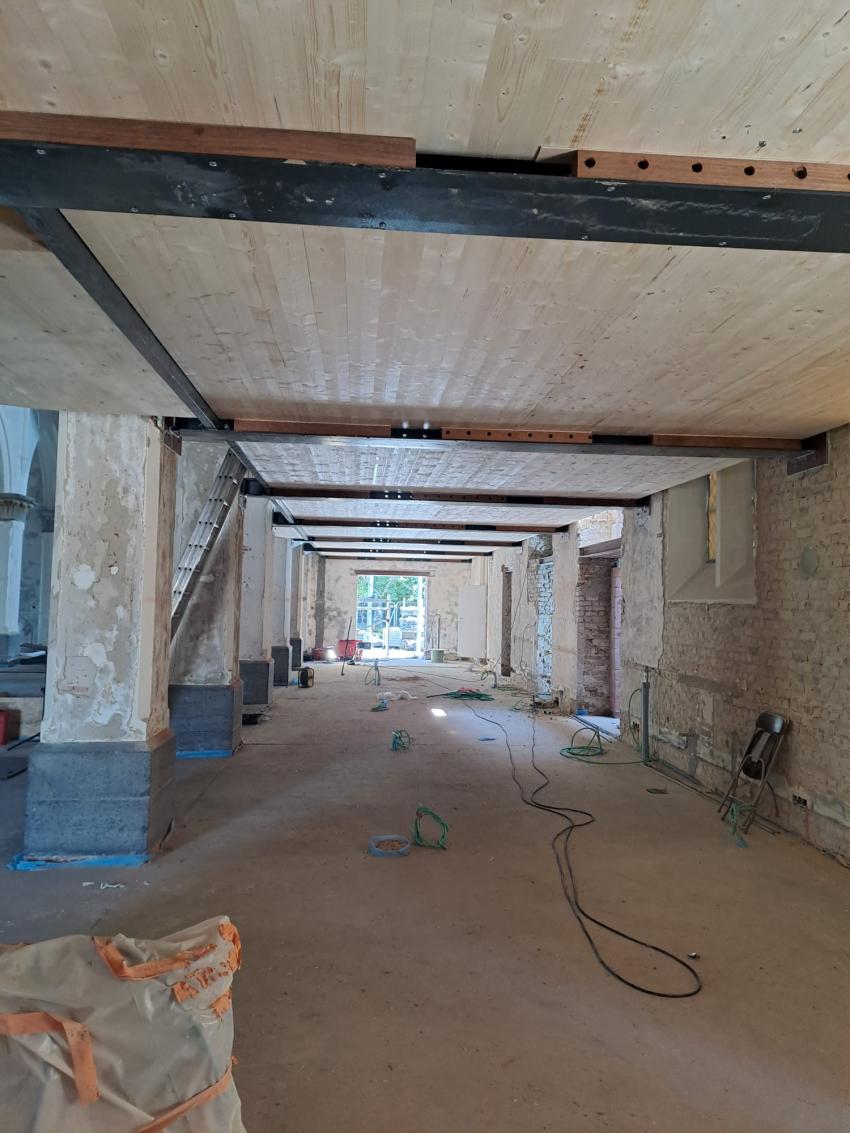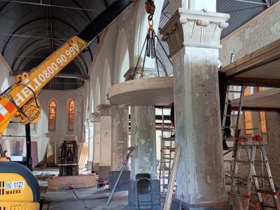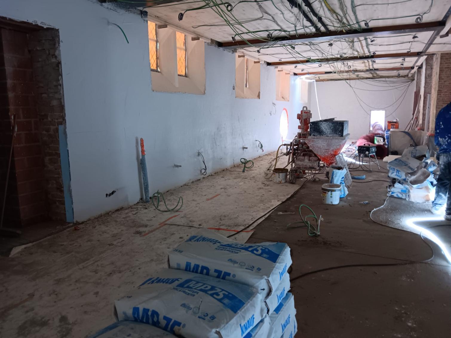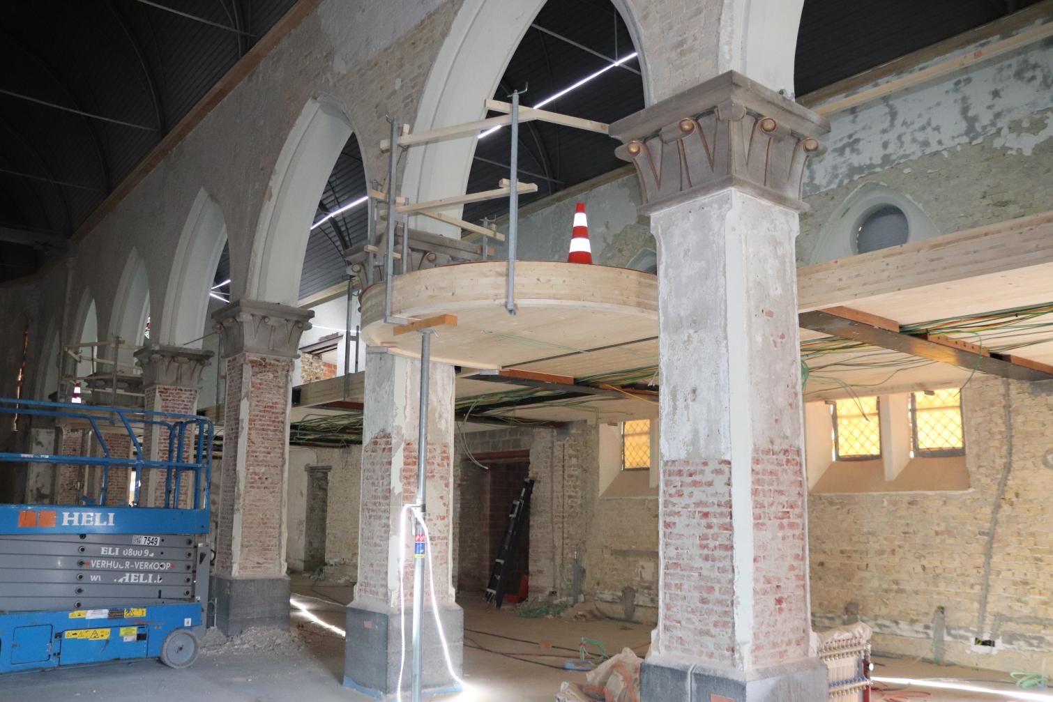 - Binnenin zijn de vlakke pleisterwerken in de kerk afgerond. De akoestische pleisterwerken op grotere hoogte volgen na nieuwjaar.