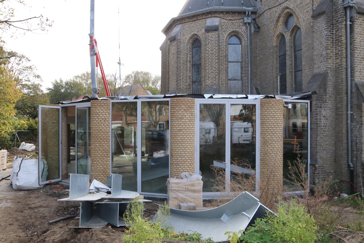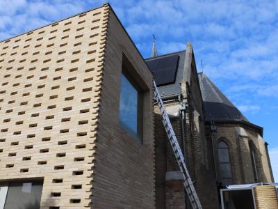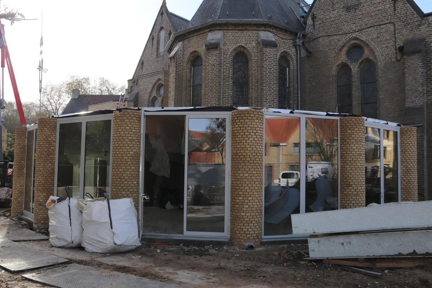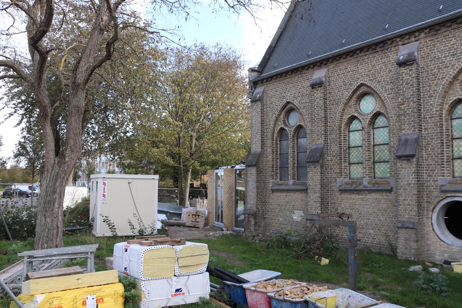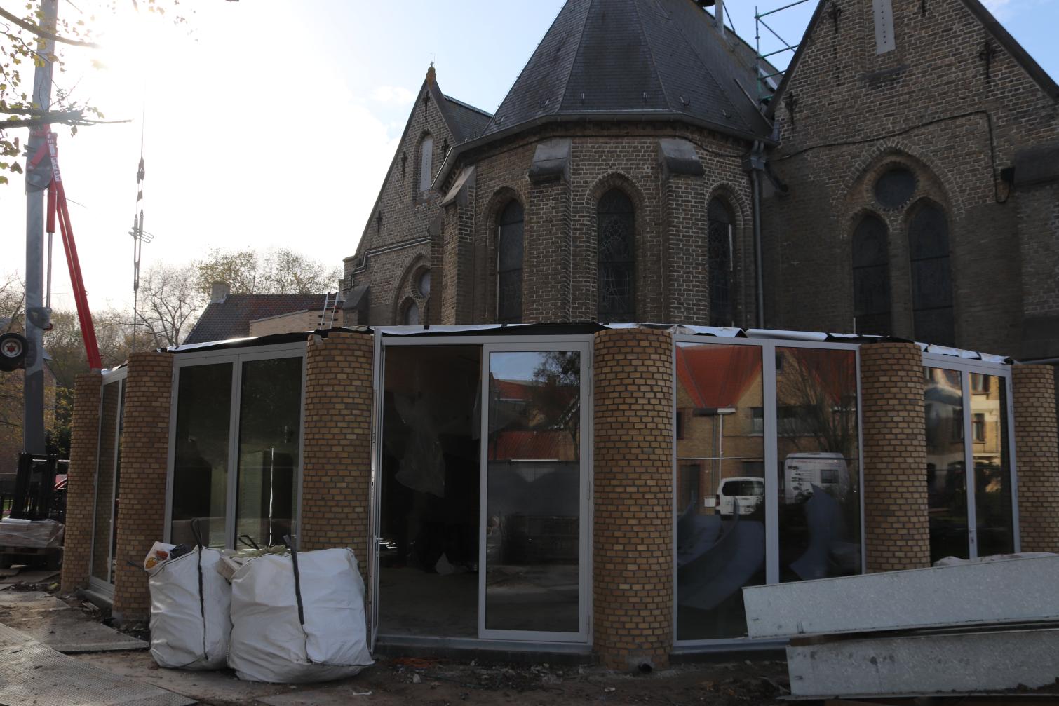 - Daarna start ook de vloerafwerking: ongeveer de helft van de vloertegels wordt gerecupereerd uit de oude kerkvloer, aangevuld met nieuwe tegels. De plaatsing daarvan is voorzien tegen eind januari.