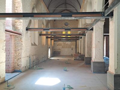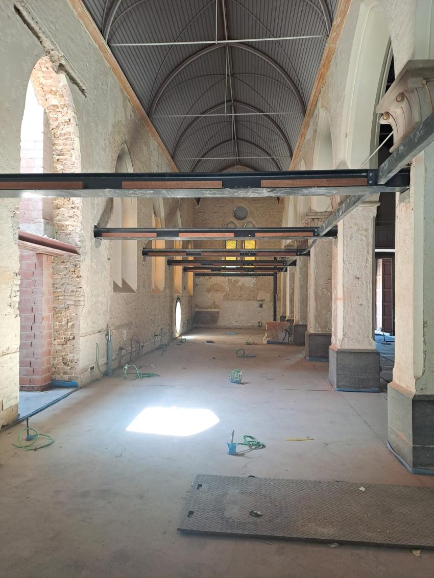 In de noord- en middenbeuk is de centrale gordijnrail geplaatst. Die rail maakt het mogelijk om de ruimtes later flexibel op te delen.