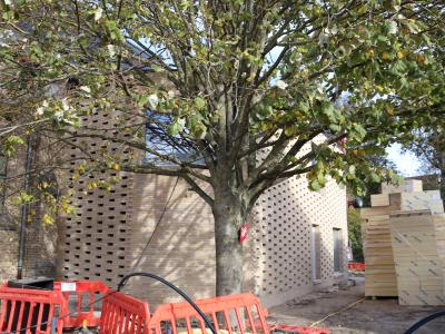 - Ook buiten zijn de eerste veranderingen zichtbaar. In december starten de werken aan de riolering en de aanleg van de regenwaterput.