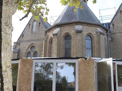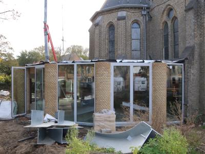 - Daarnaast wordt er verder gewerkt aan het doksaal. Op de plaats waar vroeger het orgel stond, komt een studeerplek voor jongeren.