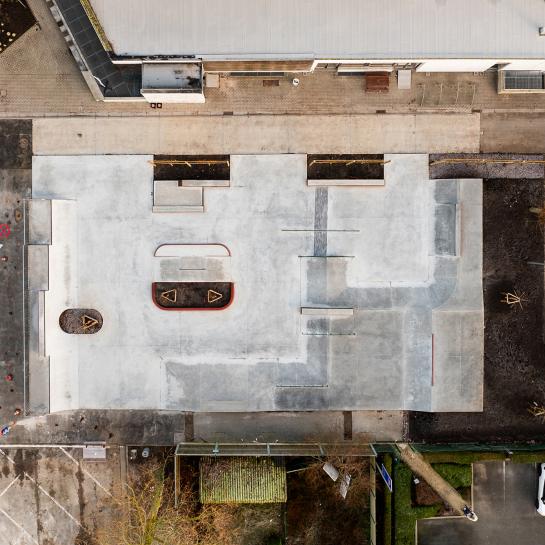 720m² skateplezier, een betonnen vloer, extra rails. verlichting tot 22u. Kom gerust je tricks eens laten zien!