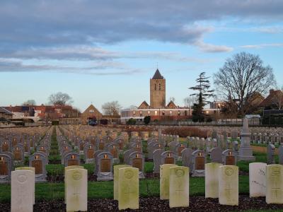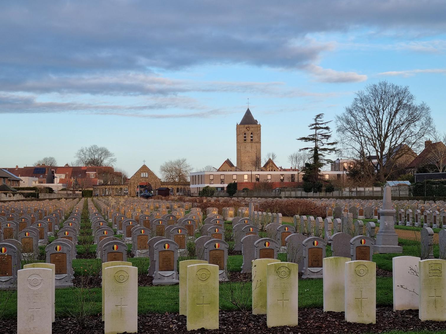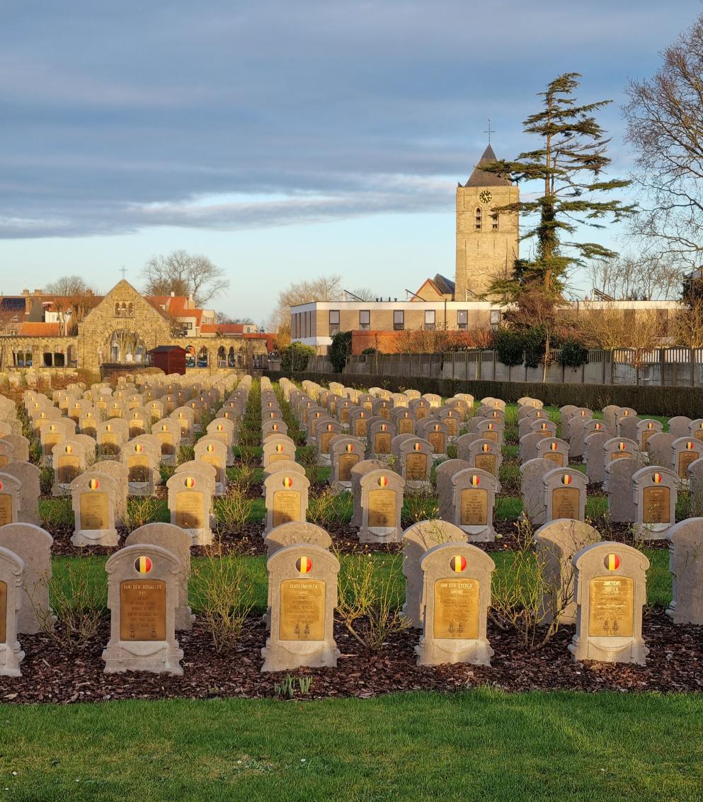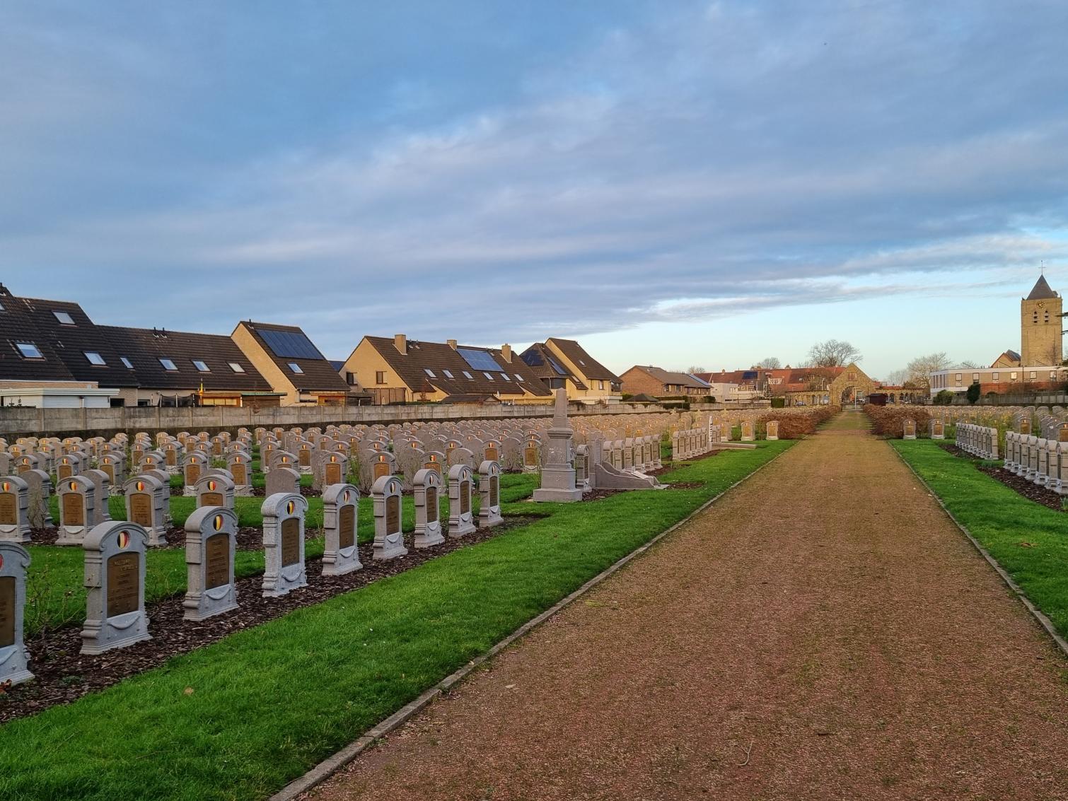Deze Belgische militaire begraafplaats is in het begin van WO I ontstaan, als uitbreiding van de bestaande begraafplaats. Hier liggen heel wat soldaten begraven die in de vlakbij gelegen medische installaties zoals het Belgisch militair hospitaal Cabour in Adinkerke en het Rodekruis hospitaal L'Océan in De Panne zijn overleden. Maar ook veel militairen die gestorven zijn in andere sectoren aan het IJzerfront, werden hier begraven. Op de begraafplaats vind je zo'n 1650 Belgische graven. Er bevinden zich ook 2 Britse perken.