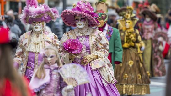 Vanop de Leopold I-Esplanade wandelen de Costumés langs de Zeedijk en de Zeelaan richting het Gemeentehuis. Een uitgelezen kans om deze unieke personages te fotograferen, met hun rijk versierde kostuums en mysterieuze maskers. Die maskers dragen ze al sinds de 13de eeuw om hun sociale status te verbergen en hun anonimiteit te bewaren.